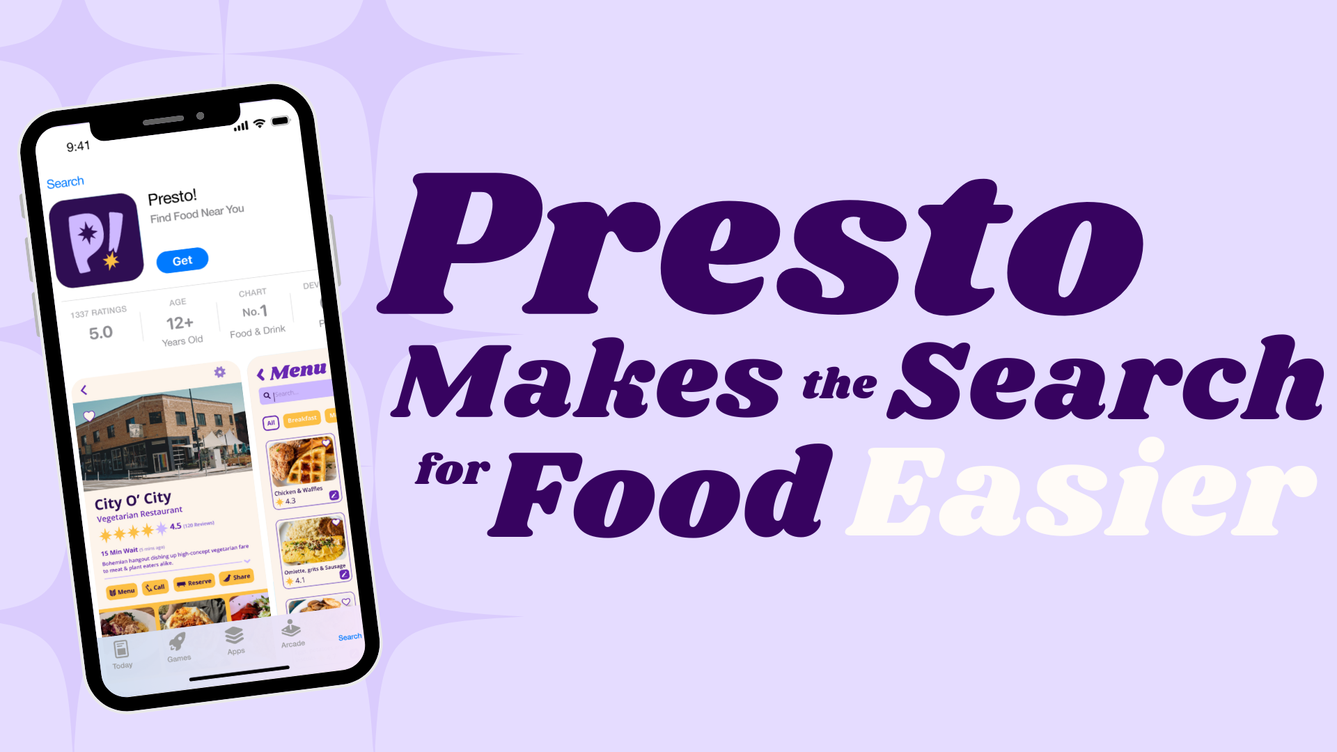Presto is an app me and my team members created to help your search easier for food. Which I took a big part of designing and putting together the app design and branding. What’s different about our restaurant finder app are the new features that create a convenient and stress-free experience. That no other apps have. An all in one experience with the ability to access accurate and convenient information to help you find the food that you are craving.